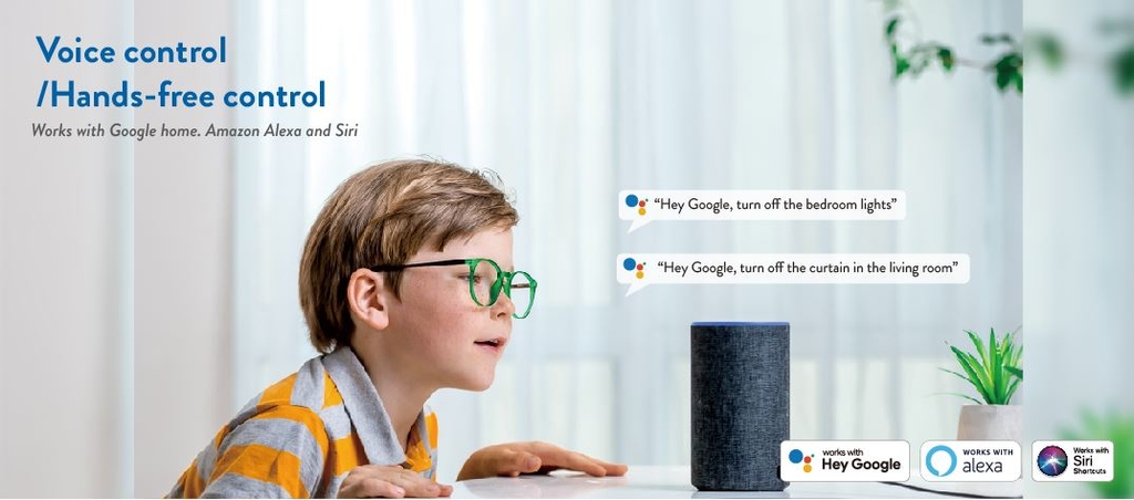 - Điều khiển đóng/mở rèm bằng app hoặc giọng nói