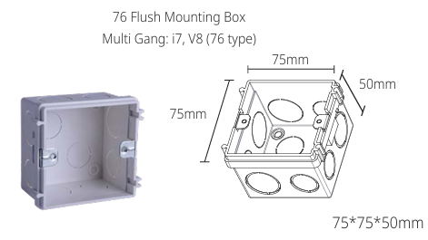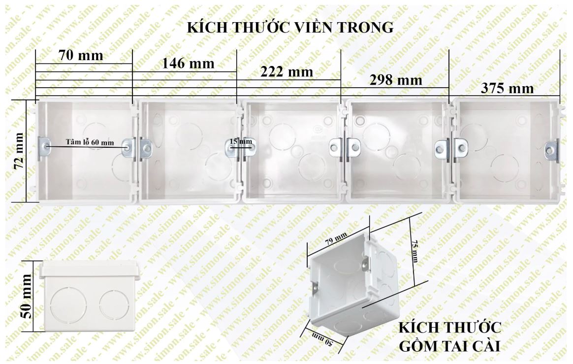 Kích thước tiêu chuẩn đế âm tường vuông nối tiếp nhau Simon I7 SED1A76