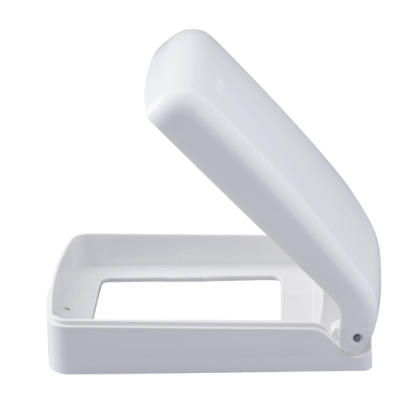 Sản phẩm được thiết kế với lớp vỏ nhựa cứng bên ngoài, chắc chắn và khó bị giòn vỡ. Màu trắng thanh lịch giúp tăng tính thẩm mỹ cho không gian lắp đặt. Nắp gập dễ điều chỉnh, mang lại sự tiện lợi khi sử dụng.