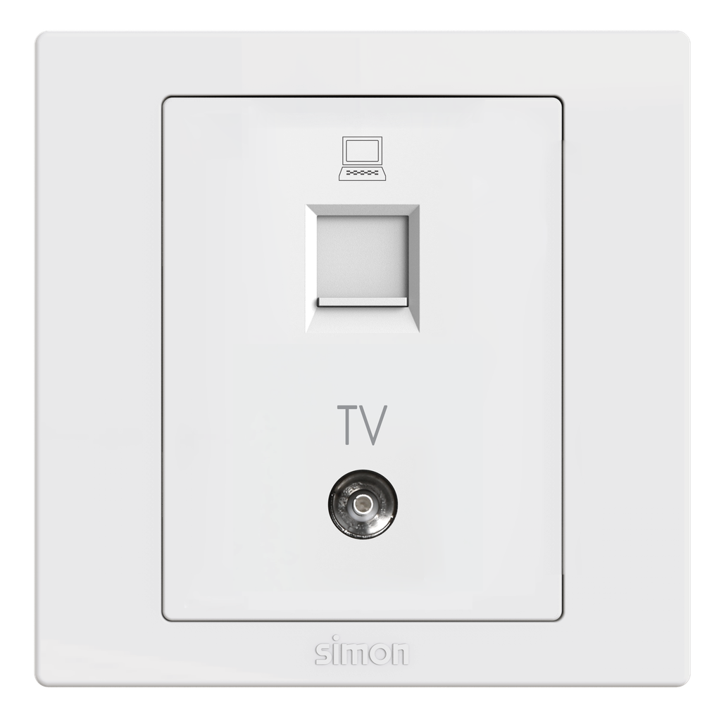 Module Bộ ổ cắm tivi + mạng Cat6 màu trắng Simon S5 lắp đế vuông