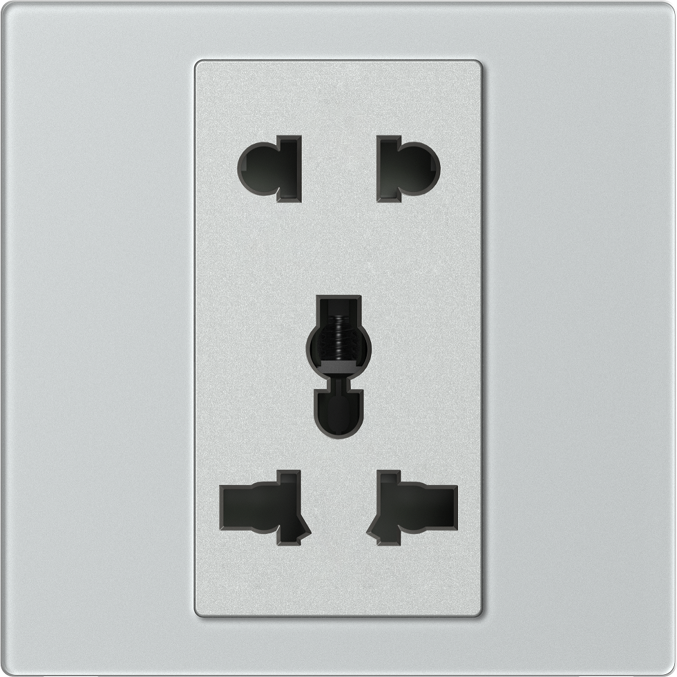 Module ổ cắm 3 chấu đa năng và 2 chấu màu bạc mặt kính Simon M7 661080G-4E lắp đế vuông