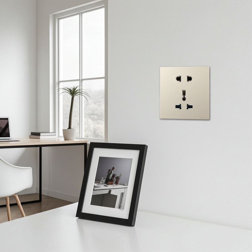 Đồng bộ thẩm mỹ: Kết hợp hoàn hảo với các công tắc và mặt nạ dòng Simon S6 màu sâm panh.