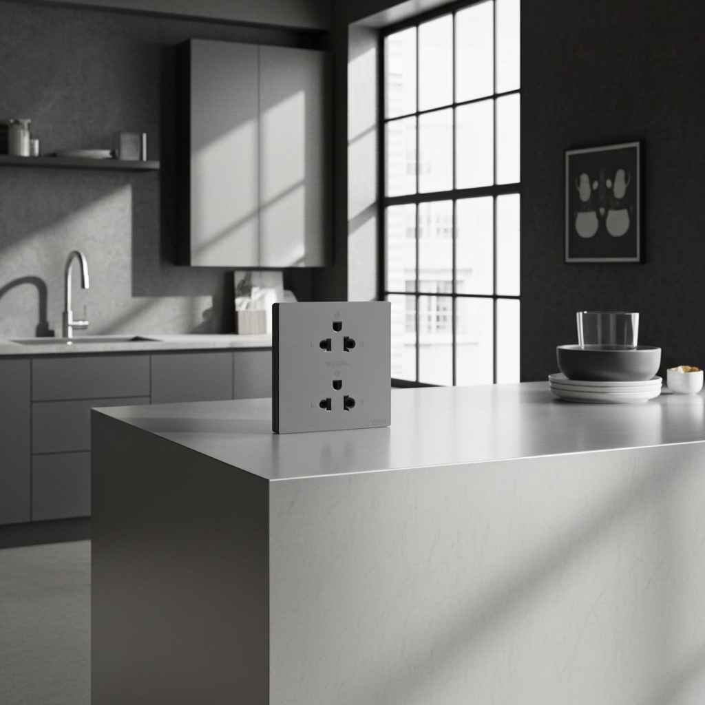 Loại công tắc: Ổ cắm đôi 3 chấu chuẩn Âu Mỹ