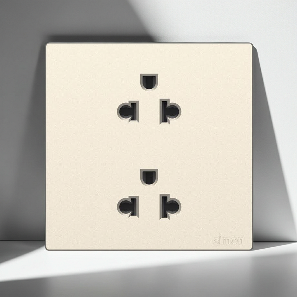 Module ổ cắm đôi 3 chấu chuẩn Âu Mỹ màu sâm panh Simon S6 581287-46 lắp chuẩn đế vuông là sản phẩm thuộc dòng thiết bị điện cao cấp Simon S6, được nhập khẩu chính hãng từ Tây Ban Nha. Sản phẩm này có thiết kế mặt vuông với màu sắc trang nhã, phù hợp với nhiều phong cách nội thất hiện đại.