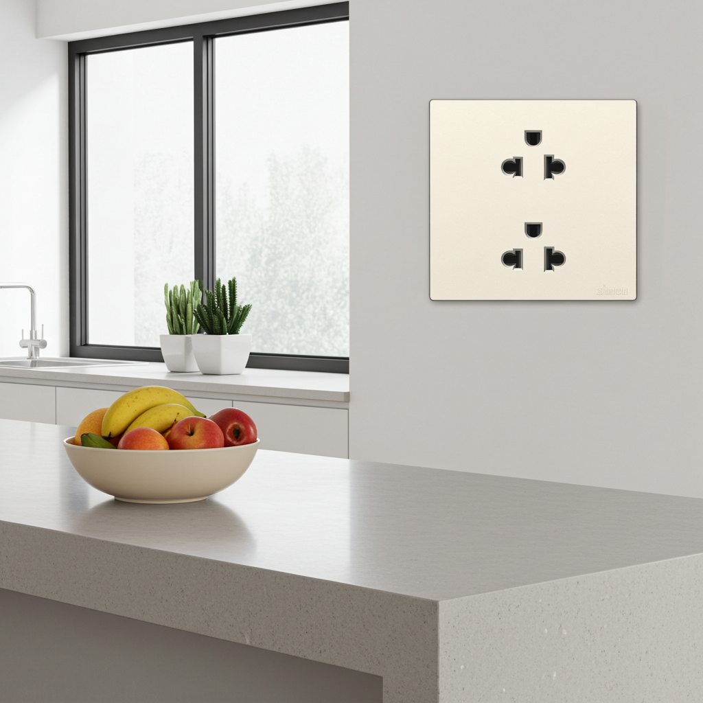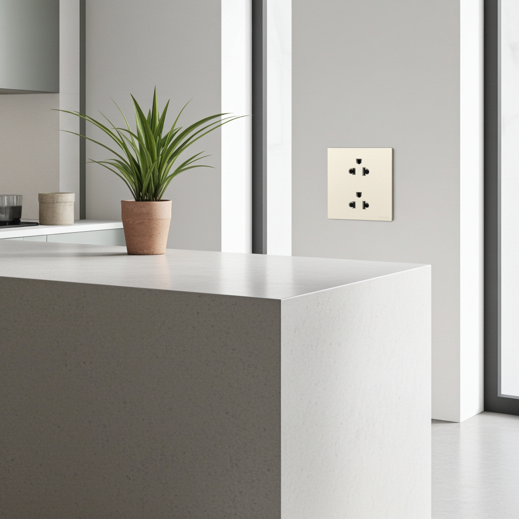 Loại công tắc: Ổ cắm đôi 3 chấu chuẩn Âu Mỹ