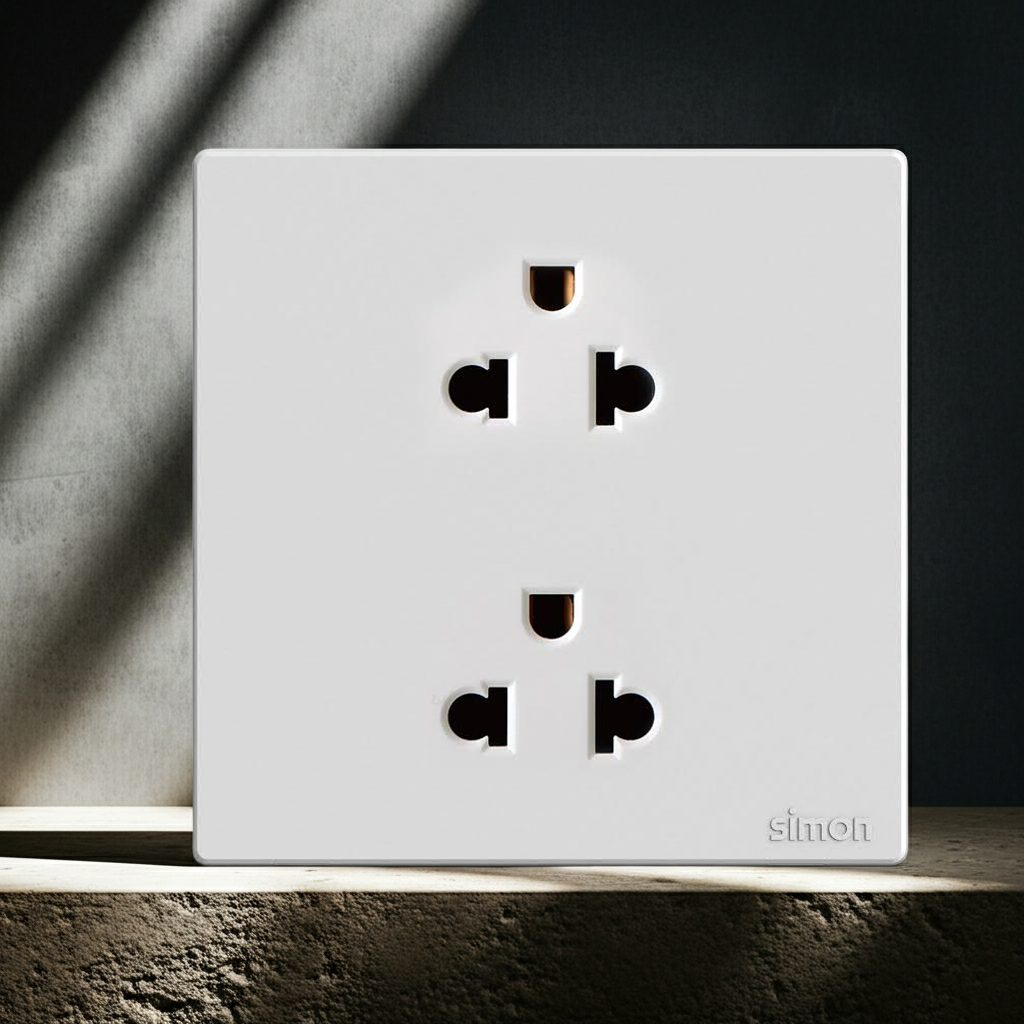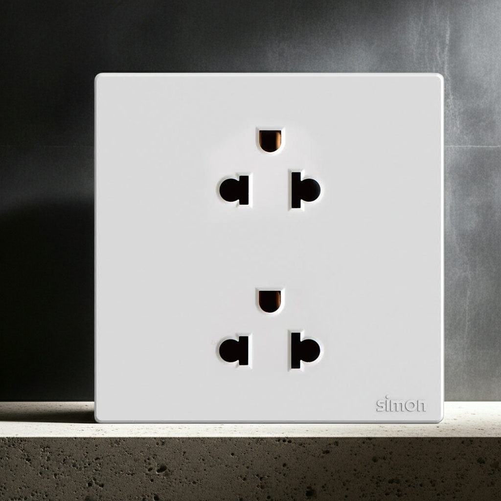 Module ổ cắm đôi 3 chấu chuẩn Âu Mỹ màu trắng Simon S6 581287 lắp chuẩn đế vuông là sản phẩm thuộc dòng thiết bị điện cao cấp Simon S6, được nhập khẩu chính hãng từ Tây Ban Nha. Sản phẩm này có thiết kế mặt vuông với màu sắc trang nhã, phù hợp với nhiều phong cách nội thất hiện đại.
