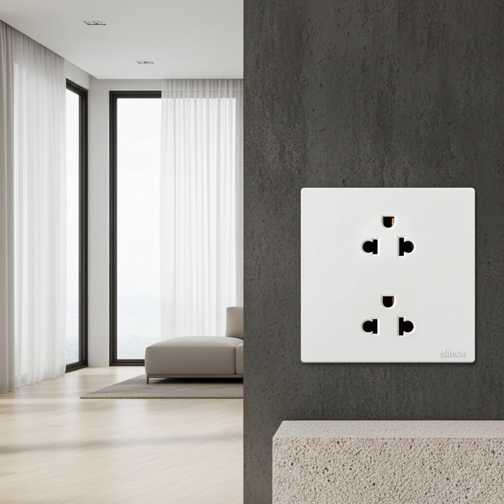 Loại công tắc: Ổ cắm đôi 3 chấu chuẩn Âu Mỹ