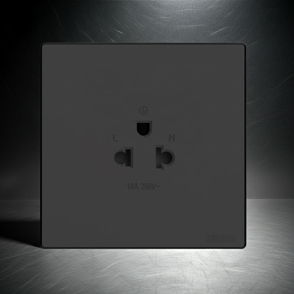 Ổ cắm đơn 3 chấu chuẩn Âu Mỹ màu ghi xám Simon S6 581087-61 lắp chuẩn đế vuông