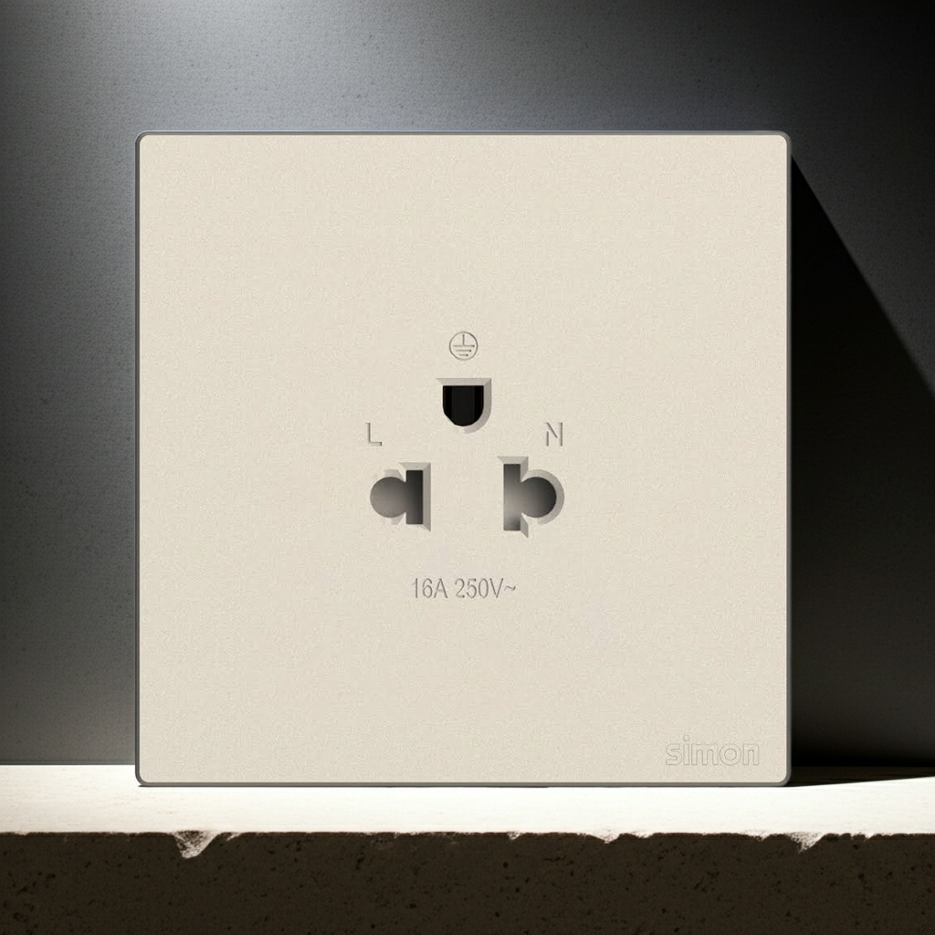 Ổ cắm đơn 3 chấu chuẩn Âu Mỹ màu sâm panh Simon S6 581087-46 lắp chuẩn đế vuông
