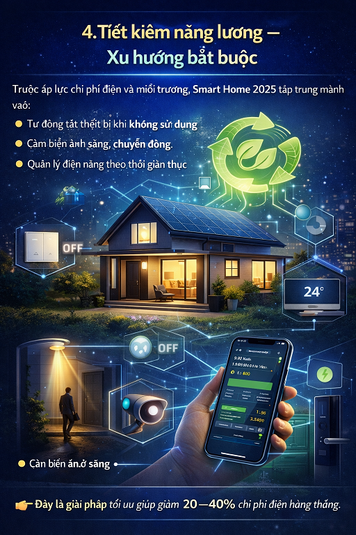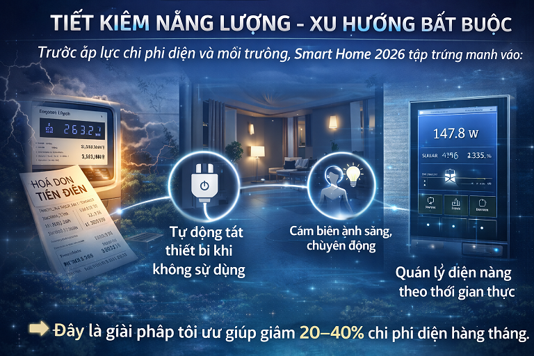 Trước áp lực chi phí điện và môi trường, Smart Home 2026 tập trung mạnh vào: